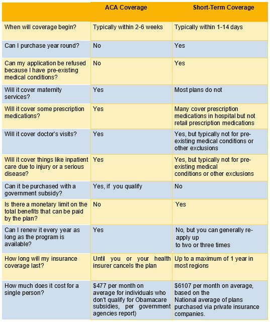 ACA-complaint health plan compared to short-term health coverage: A brief guide